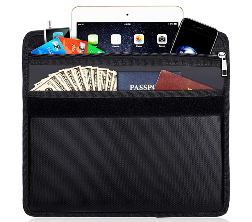 The inner pocket of the shield signal can store phone or other electronic products.The outer pocket of the fireproof material can store important documents or cash---Stylish look and multi-function design.
