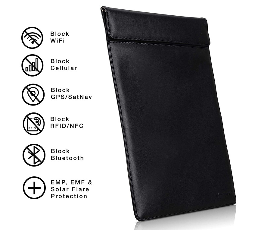 Faraday Bag Tablet Sleeve Leather or Waterproof Nylon Signal Blocking Device Shielding for iPad, Samsung Galaxy Tab, Most Tablets for Travel, Privacy, Anti-Hacking