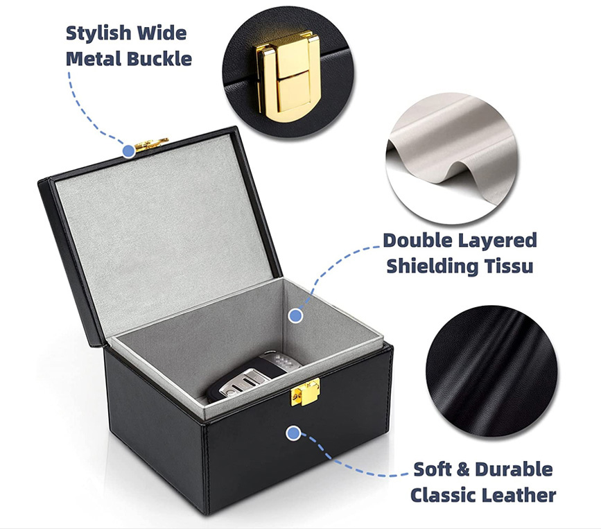 Faraday Box with Faraday Pouch 2 Pack, Keyless Entry Car Key Safe Protector RFID Anti-Theft Signal Blocking Cages.