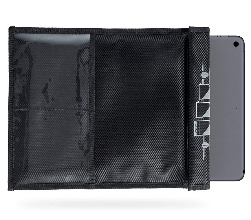 Designed for multi-purpose storage of cell phones, tablets, key fobs, credit cards, hard drives and USB drives.