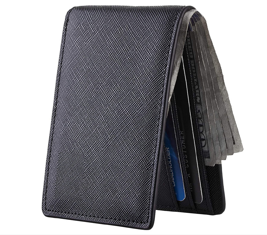 Mens Slim Front Pocket Wallet Genuine Leather ID Window Card Case RFID Blocking.