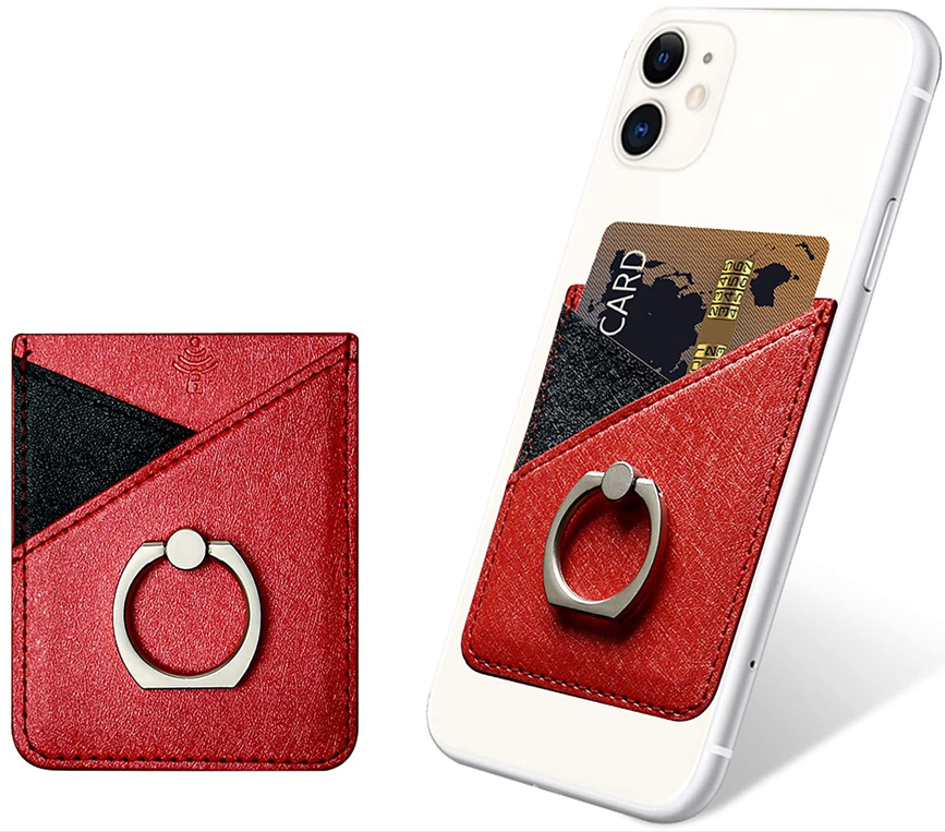 Card Holder for Back of Phone, Cell Phone Card Holder with Ring Grip Phone Wallet Stick on Phone or Case, RFID Blocking Credit Card Holder Card Pocket Compatible with Most Smartphones.