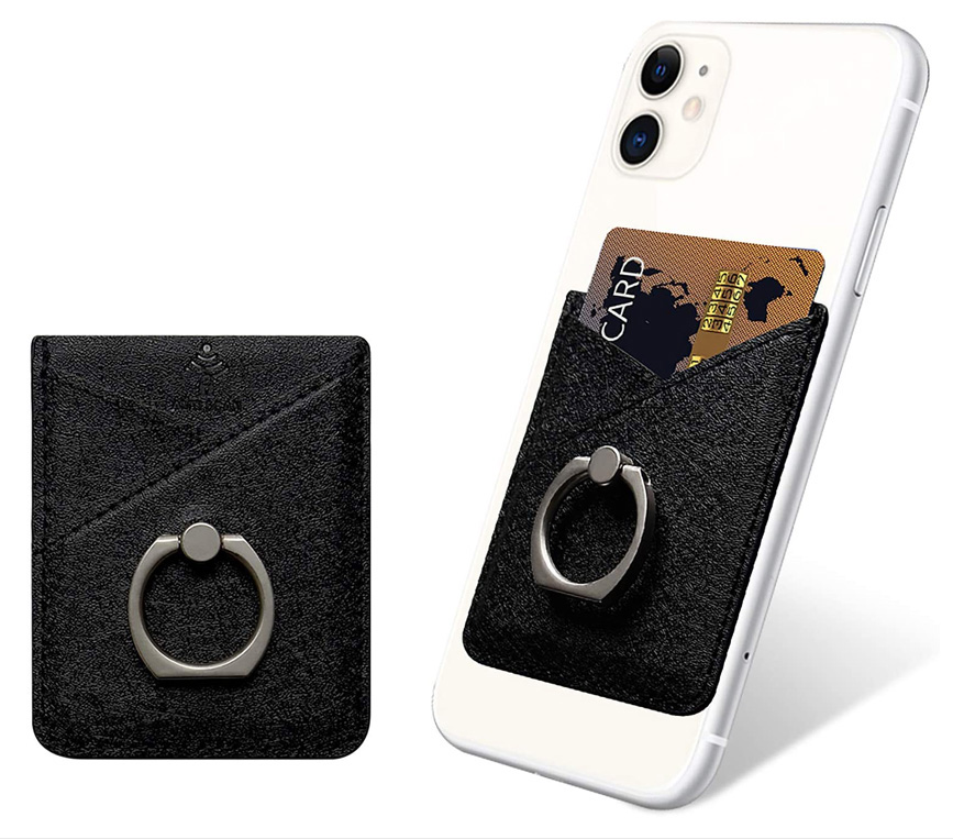 Card Holder for Back of Phone, Cell Phone Card Holder with Ring Grip Phone Wallet Stick on Phone or Case, RFID Blocking Credit Card Holder Card Pocket Compatible with Most Smartphones