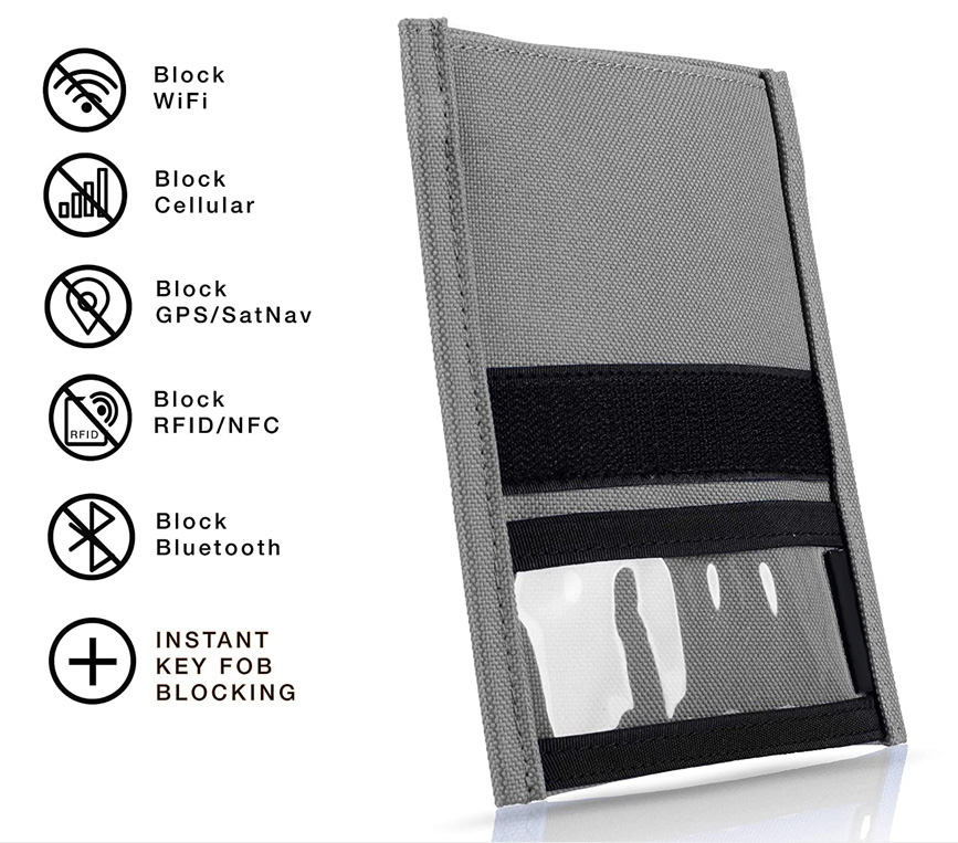 100% Signal Blocking Faraday Cage Technology. This Faraday bag is the perfect RFID Blocker. Our technology shields against RFID, WIFI, Bluetooth, NFC, EMP, Solar Flare, Cellular, GPS, Radio - every signal type! Also provides EMF protection against the long term effects of EMF Radiation.