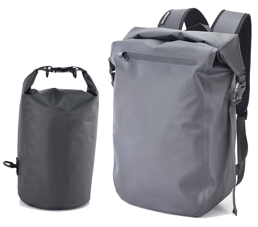 Made from the highest quality Rip Stop 400D Nylon TPU with RF welded seams and high-tension thread. Measures 15" x 15" x 3", providing 20L of space. Fits large laptops, tablets, and most electronic devices. Extremely durable roll down and clip seal and dual opening pocket.
